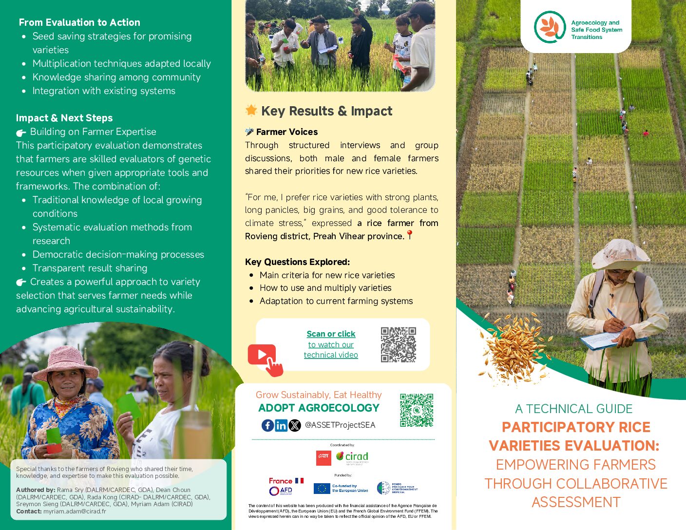 The technical leaflet introduces the rice–duck system, an agroecological practice that reduces chemical use by allowing ducks to control pests and weeds while naturally fertilizing the soil. It outlines the system’s economic benefits, showing how farmers can increase rice yields and earn additional income from duck sales. The leaflet also provides practical guidance, timelines, and cost estimates to support successful adoption.