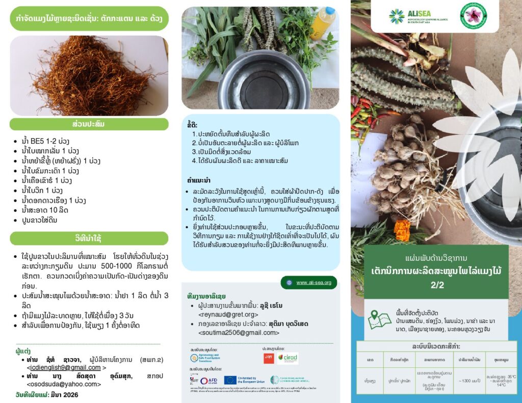 These leaflets explain simple techniques for producing natural insect repellents from local plants and household ingredients. It provides several herbal formulas, preparation steps, and application methods for different types of pests. The guide promotes safe, low-cost, and eco-friendly alternatives to chemical pesticides for sustainable farming.